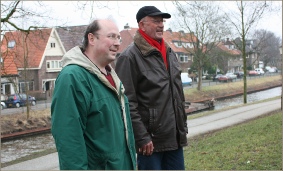 De heer T. van den Hoven legt aan Simeon uit waar de onderaardse gang ongeveer loopt. Hij ligt haaks op het Noorderplantsoen tussen de 2e en de 3e put. Ongeveer in 1975 heeft de heer van den Hoven de riolering hier mede aangelegd. Daarbij ontdekte hij de onderaardse (klooster)gang waar hij destijds ca. 10 meter ingelopen is. De gang was manshoog...